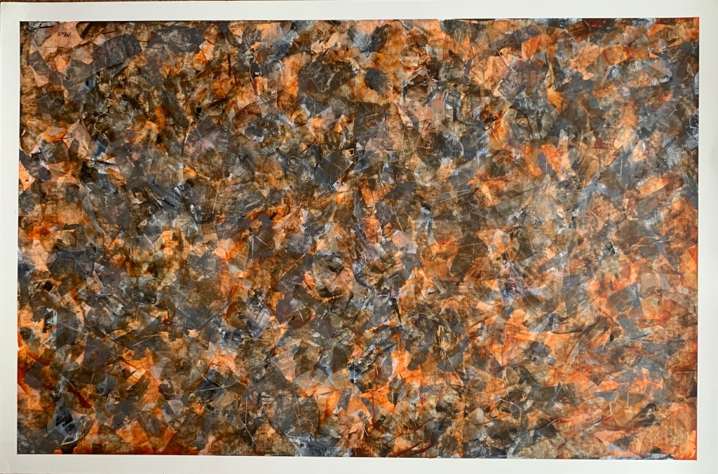 Last April the spring thaw made the ground around my cabin a muddy mess. The ground was so saturated with water you could sense the mud oozing under the leaves. I was walking to my woodpile staring at the ground. There was both beauty and ugliness to what I was seeing. I remember the colors and textures so vividly. When I got back to the cabin, I stoked the stove and immediately started painting. In two days I was done. “Spring Thaw” was done. For myself, I managed to capture all the beauty I had experienced. The painting is born from my humanity, my spirit, and my love of nature.